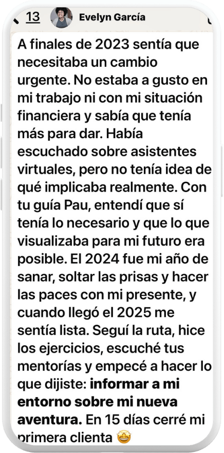 De ese trabajo nació también Tu Team Virtual, mi agencia de representación de talento, donde conecto a las AV que formo con emprendedores que necesitan apoyo real y profesional.